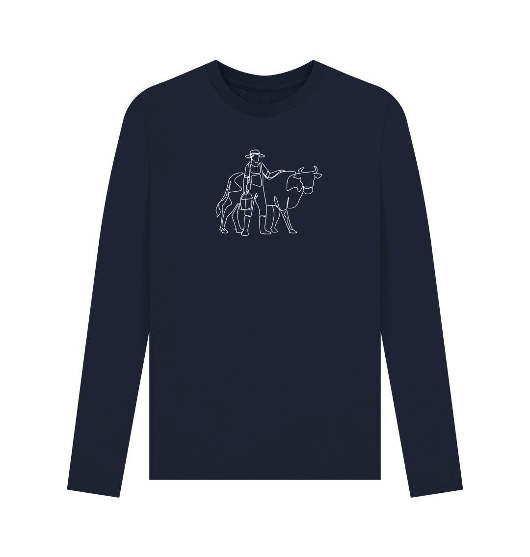Men's Cow Organic Cotton Long Sleeve Tee - White Design