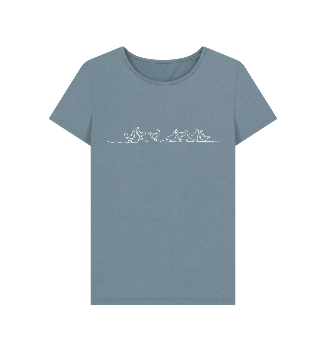 Women's Chickens Organic Cotton Crewneck Tee - White Design