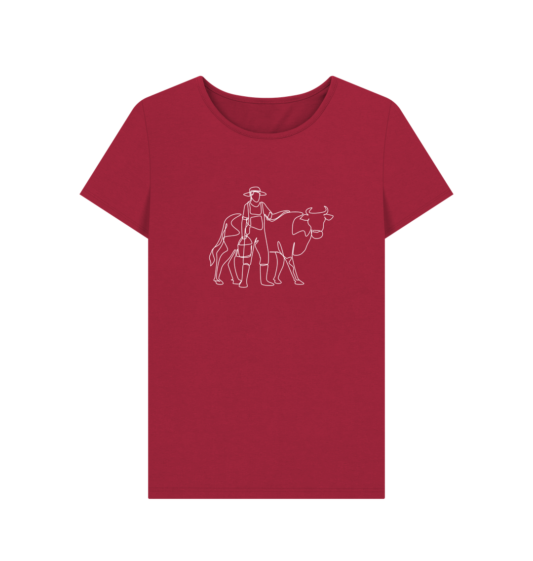 Women's Cow Organic Cotton Crewneck Tee - White Design