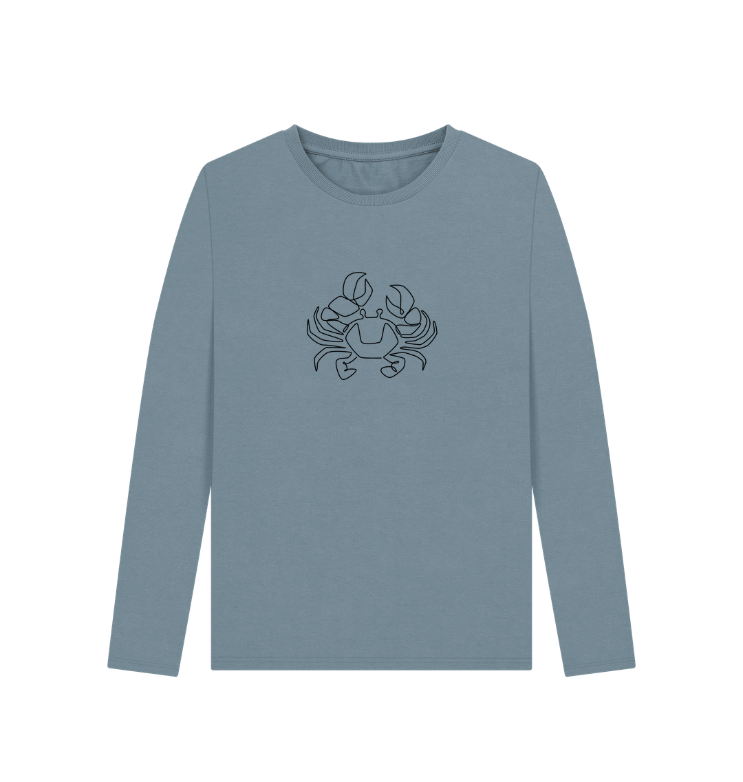 Women's Crab Organic Cotton Long Sleeve Tee - Black Design