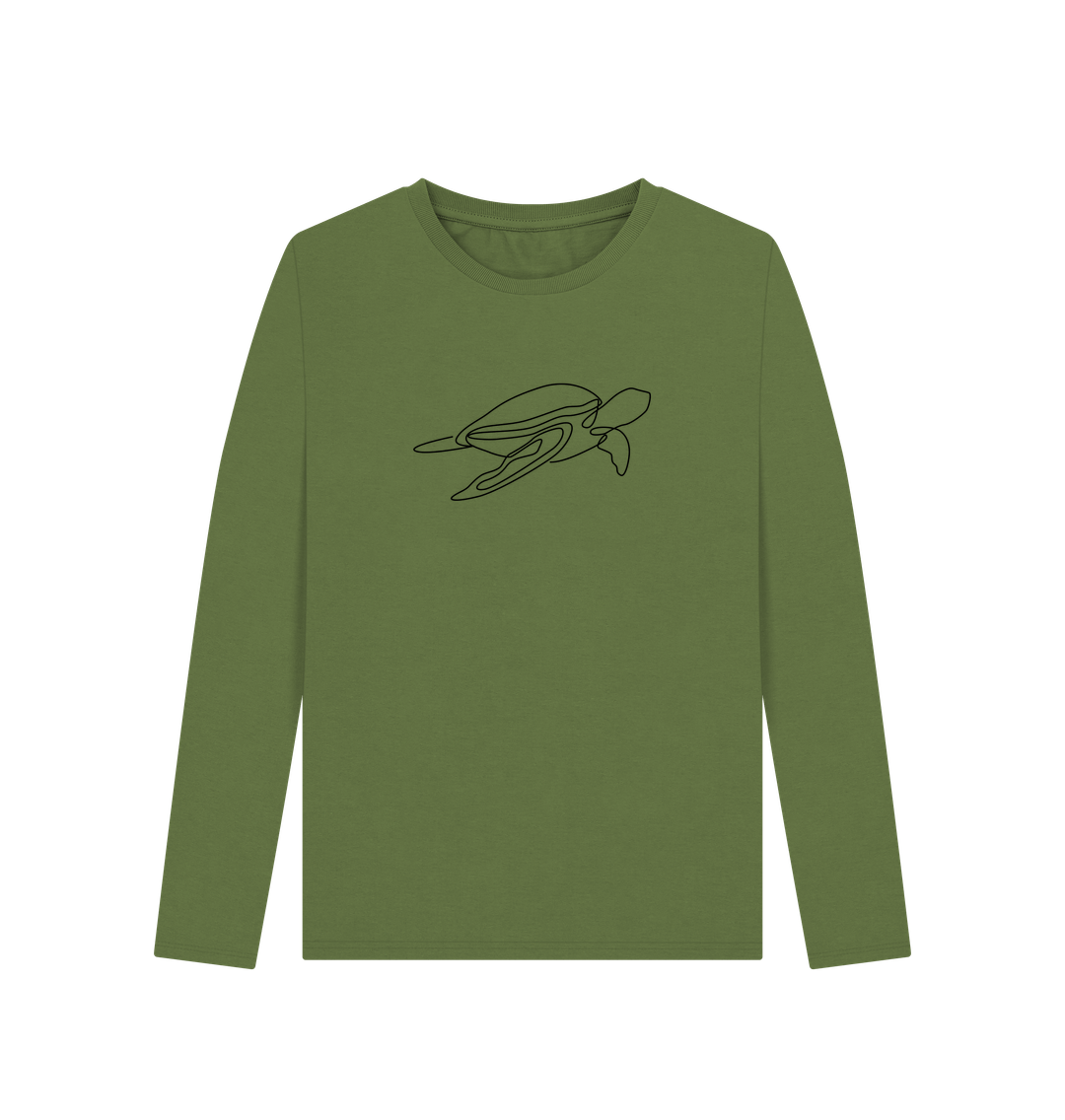 Women's Sea Turtle Organic Cotton Long Sleeve Tee - Black Design