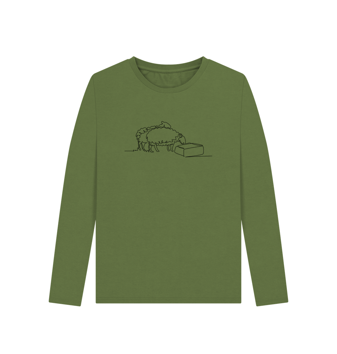 Women's Sheep Organic Cotton Long Sleeve Tee - Black Design