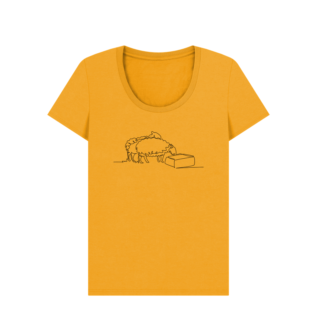 Women's Sheep Organic Cotton Scoop Neck Tee - Black Design